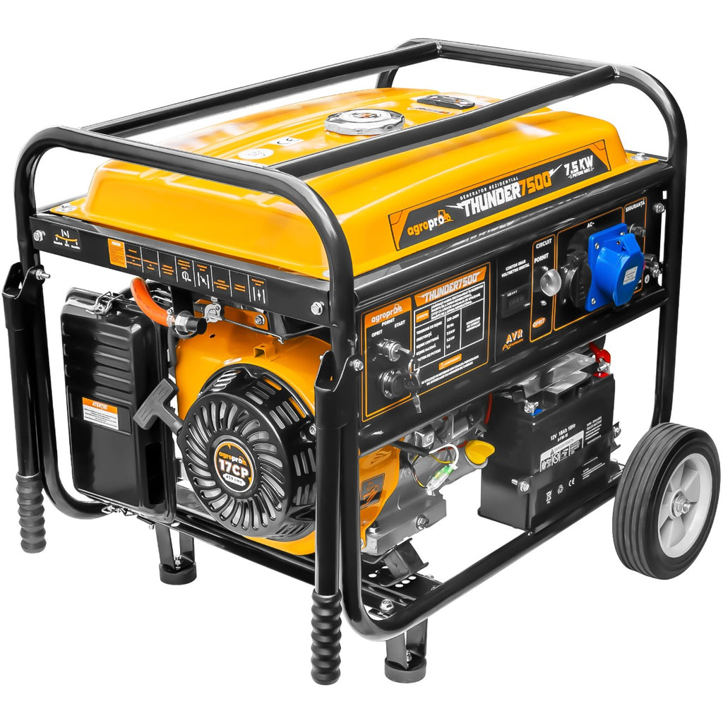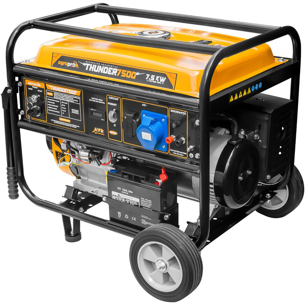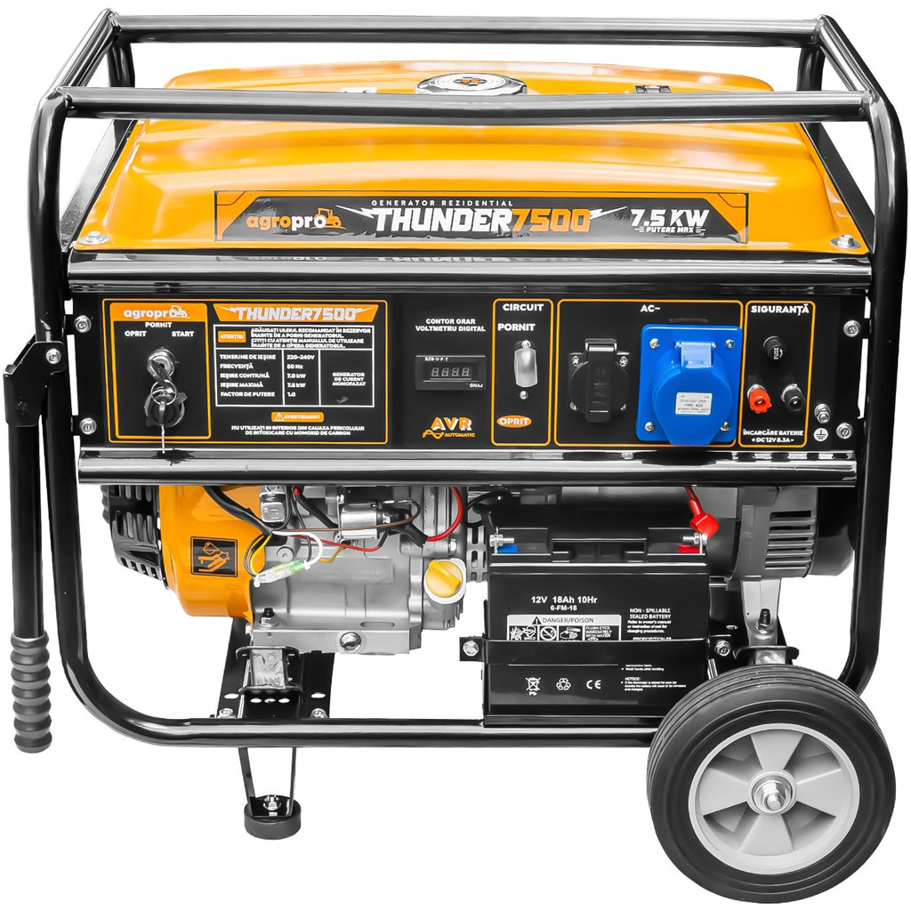 Generator 7.5 kW cu automatizare ATS AgroPro THUNDER 7500 benzina GPL pornire electrica telecomanda rezervor 25 L monofazat Euro 5 sistem transport cu roti si manere