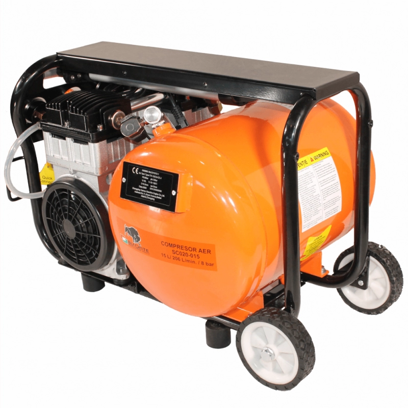 Compresor de aer cu piston BISONTE SC020-015 fara ulei debit 206 l/min presiune 8 bar 230V motor 2 CP