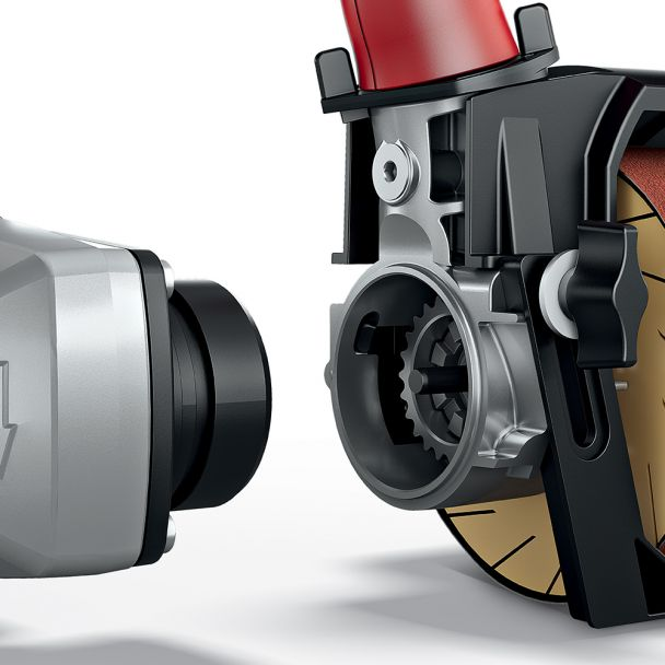 Carcasa angrenajului reductor este dispusa la 90 °, astfel montarea acesoriilor este convenabila si confortabila. Decuplarea accesoriilor de face usor datorita butonului de blocare a axului plasat ergonomic.