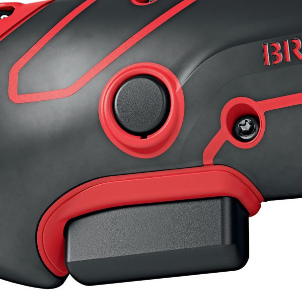 Butonul de blocare a axului este pozitionat ideal pentru a preveni erorile de functionare si nu interfereaza cu zona de prindere.