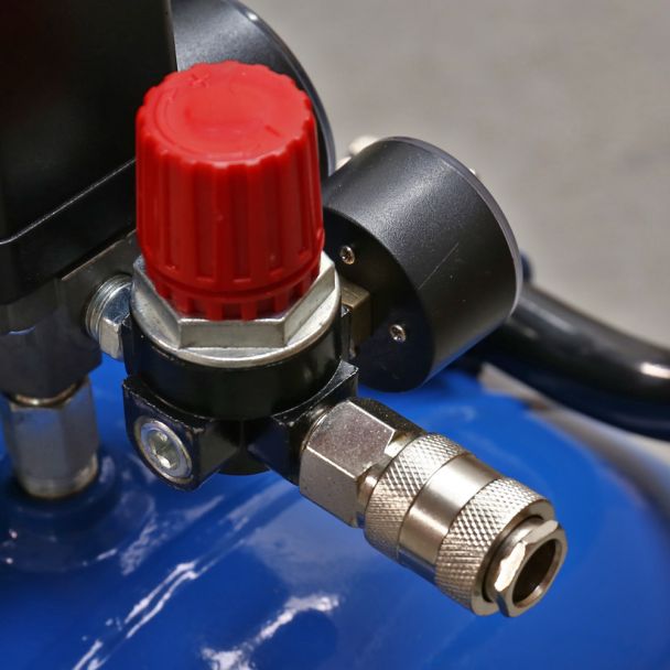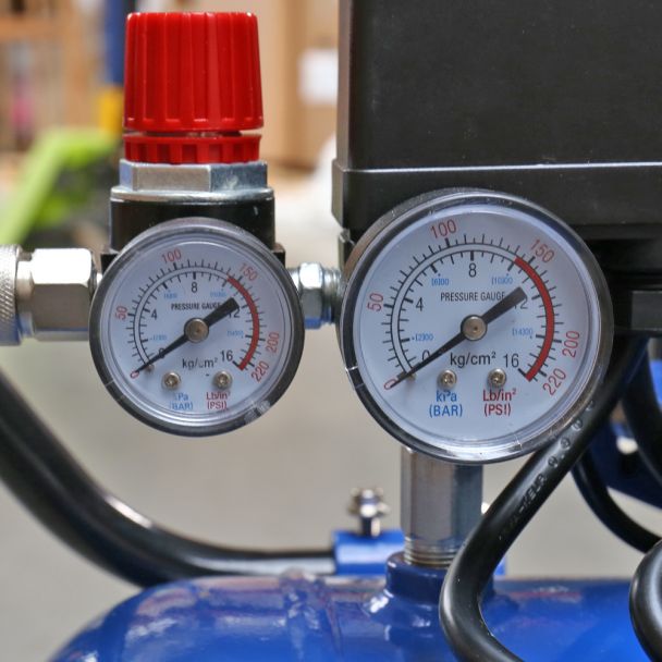 - Dotat cu presostat, regulator de presiune, două manometre