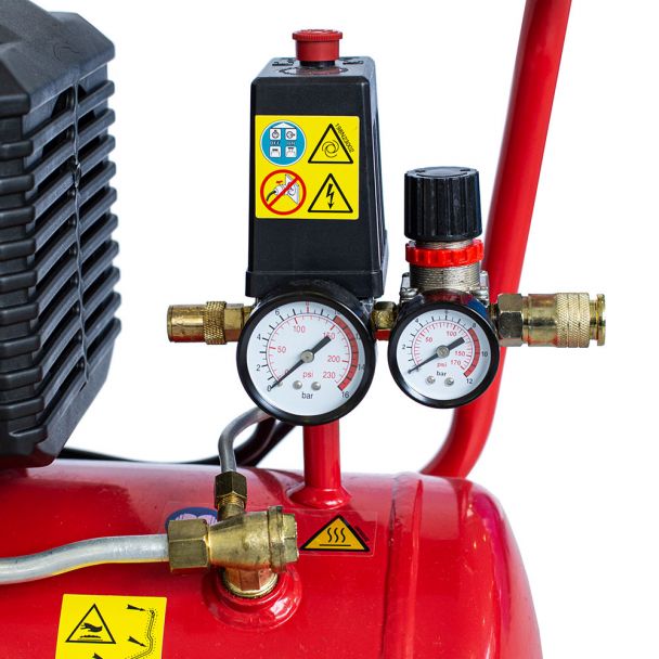 Acest compresor de aer nu doar că facilitează sarcinile de zi cu zi, dar îmbunătățește considerabil eficiența muncii tale. Dotat cu presostat pornit/oprit, regulator de presiune cu citire directă și cuplă rapidă, compresorul îți permite să controlezi cu ușurință presiunea și să te adaptezi rapid cerințelor fiecărei activități. Mai mult, manometrul de presiune și supapa de siguranță îți oferă un control precis și sigur al operațiunilor.