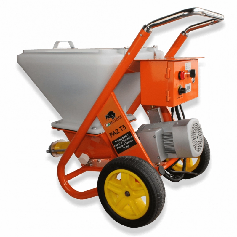 PCS -T5 poate fi utilizat cu compresor la gleturi (incarcare/finisaj), tencuieli decorative (granulometrie max. 2,5 mm);