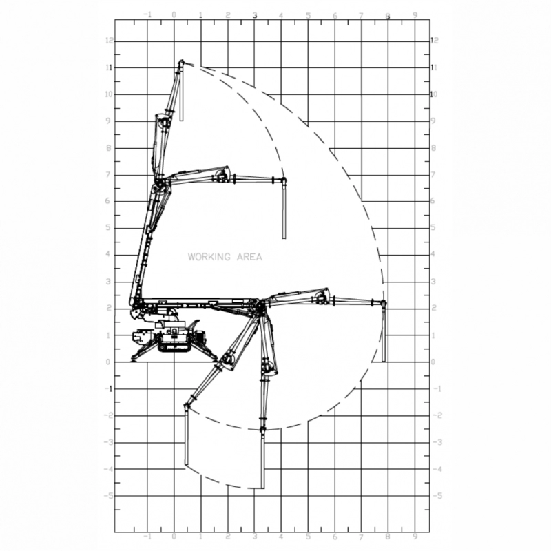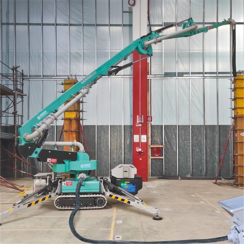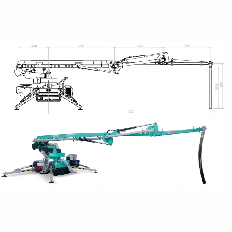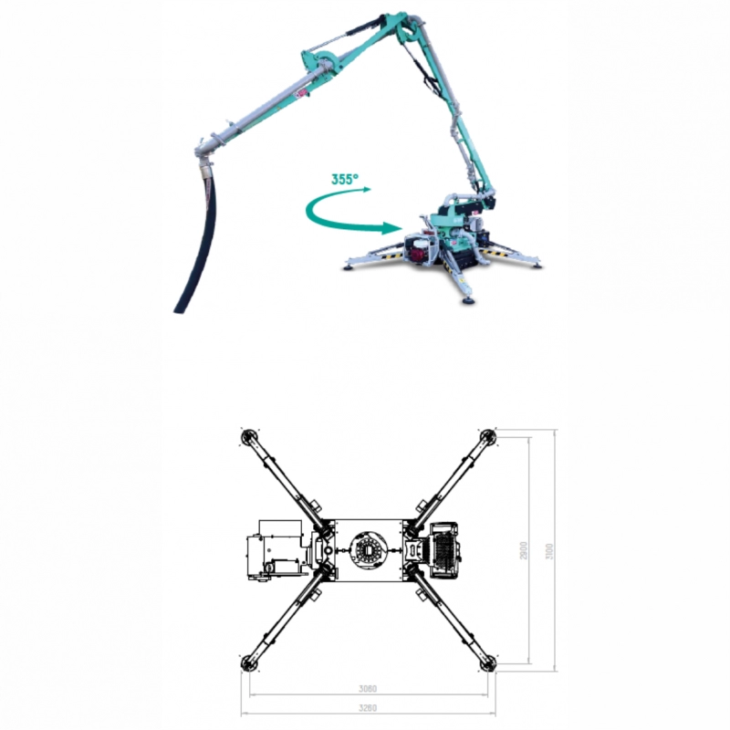 Bratul de distributie necesita un spatiu mic pentru deschidere (2,80 m). Prin urmare, este capabil să funcționeze chiar și în încăperi/medii cu etaje nu deosebit de înalte. Radiocontrolat, simplu si intuitiv de manevrat si pozitionat in zona de lucru, datorita stabilizatorilor autonivelanti.