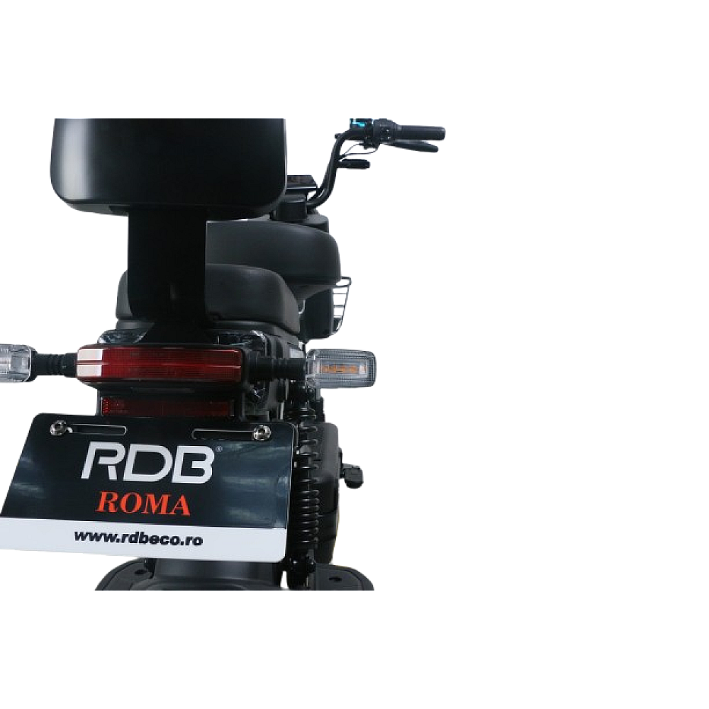 Scuterul electric RDB ROMA este un vehicul performant, echipat cu un motor de 600W si baterie de 48V. Acesta poate atinge o viteza maxima de 25 km/h si poate transporta pana la 143 kg. Designul sau modern si tehnologia avansata il fac perfect pentru calatorii in oras. Cu o constructie solida si o autonomie impresionanta, scuterul electric RDB ROMA este un ajutor valoros pentru cei care doresc sa se deplaseze intr-un mod mai sustenabil si mai rapid, atat individual cat si insotit intrucat scuterul este echipar cu doua locuri individuale.