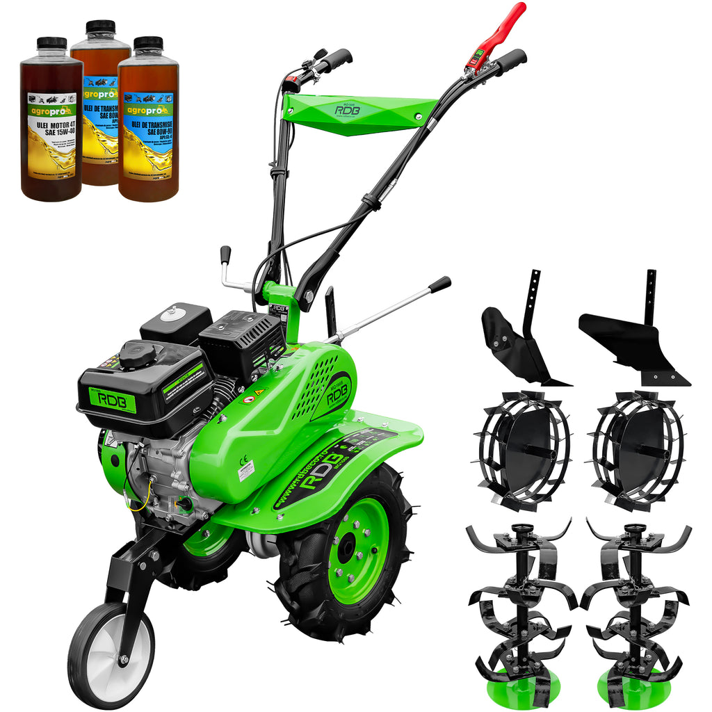 Motosapa RDB MQ168B motor 7 CP benzina 2+1 viteze latime lucru 105 cm freze segmentabile roti cauciuc 4.00x8" roti metal plug arat rarita reglabila 3l ulei