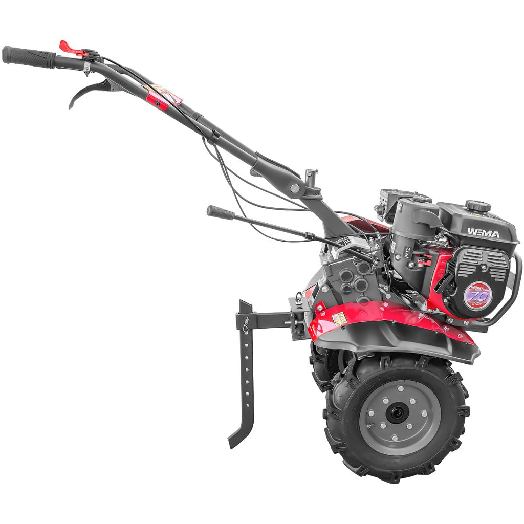• Performanta si eficienta: Puterea motorului de 7 CP si capacitatea cilindrica de 212 cmc asigura o prelucrare rapida si eficienta a solului.