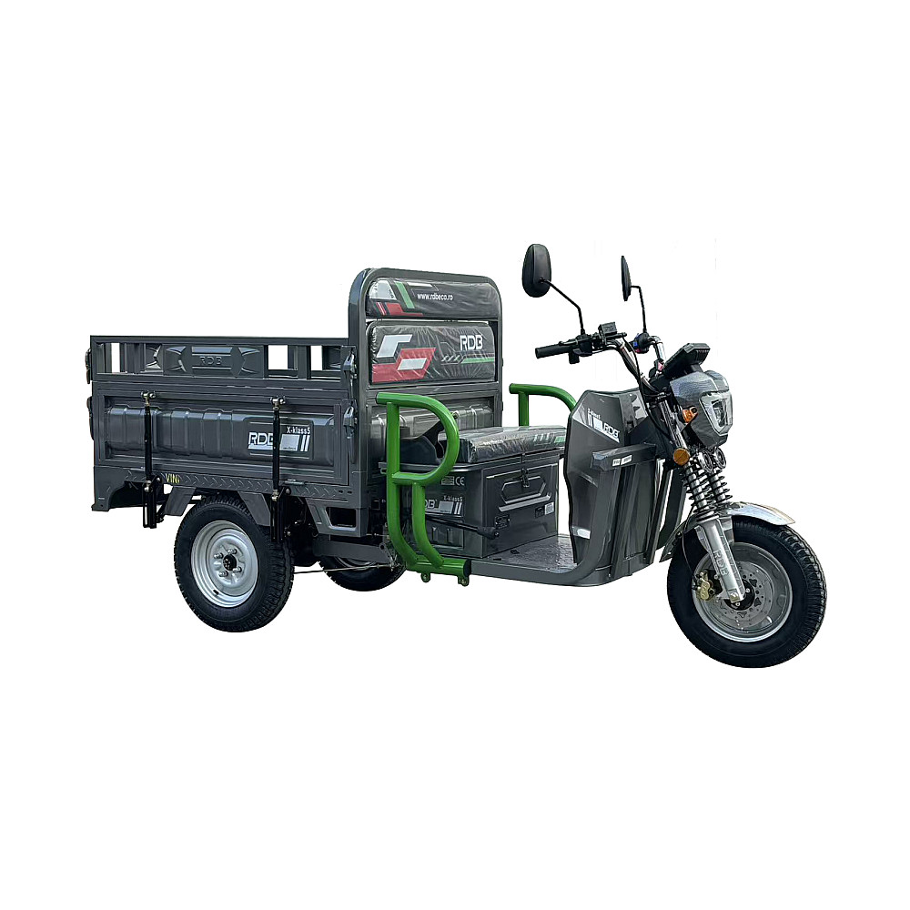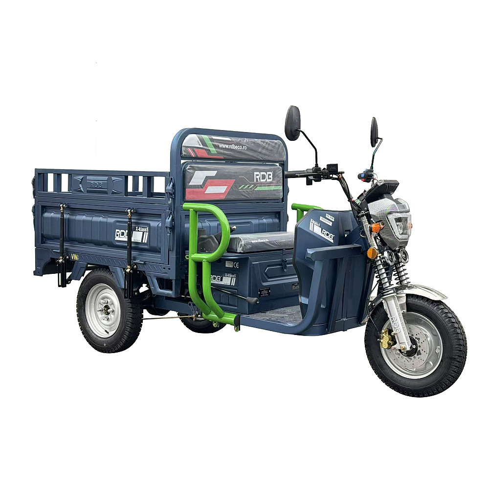 RDB X-Klass4 Plus este un model electric de inalta capacitate, echipat cu motor de 3500W si baterie de 72V / 32Ah. Poate atinge o viteza maxima de 25 km/h si sustine sarcini de pana la 628 kg, fiind dotat cu bena basculabila actionata prin sistem hidraulic manual.